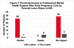 A surprising finding in this study was that patients who tried to seek out professional mental health support in the parental leave group had a harder time than those who didn’t have parental leave. The small sample size for this subgroup limits our ability to interpret why this occurred or if this finding was due to chance alone. An avenue to explore further could be other barriers to access, such as cost, appointment availability, and transportation may also be impacting access.